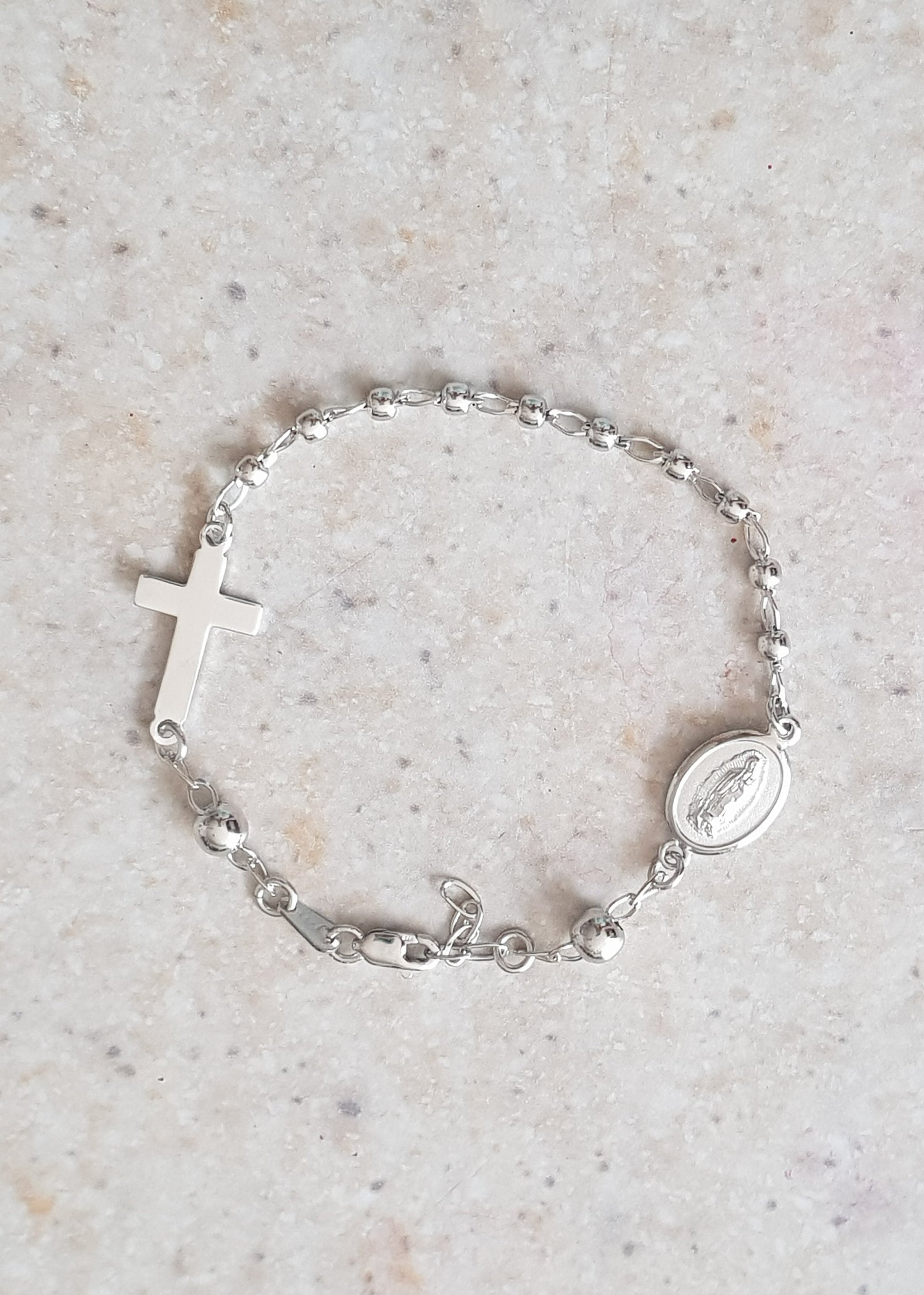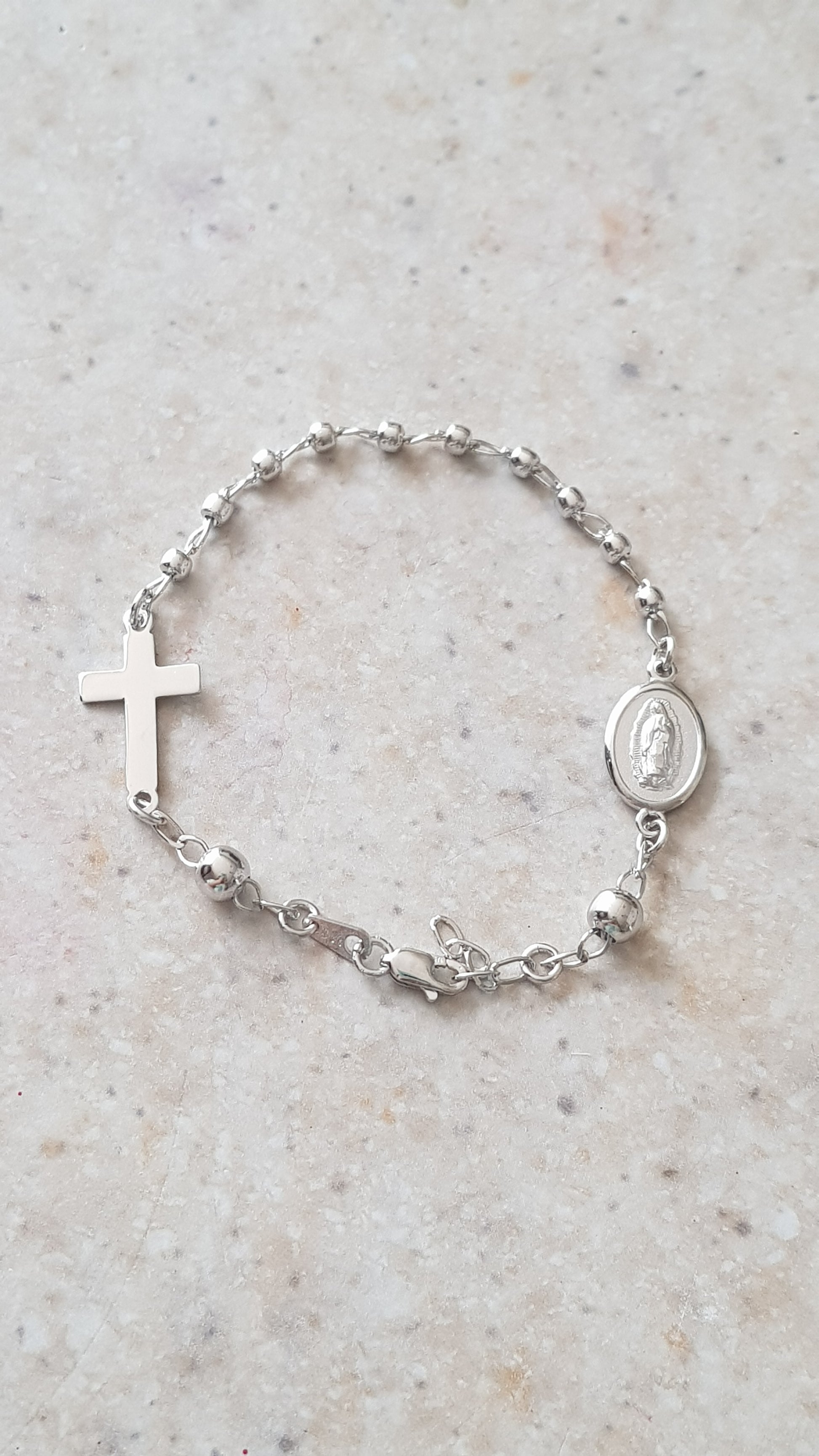 Pulsera Decenario Virgen de Guadalupe y Sagrado Corazón de Jesús - Plata esterlina 925 y Rodio