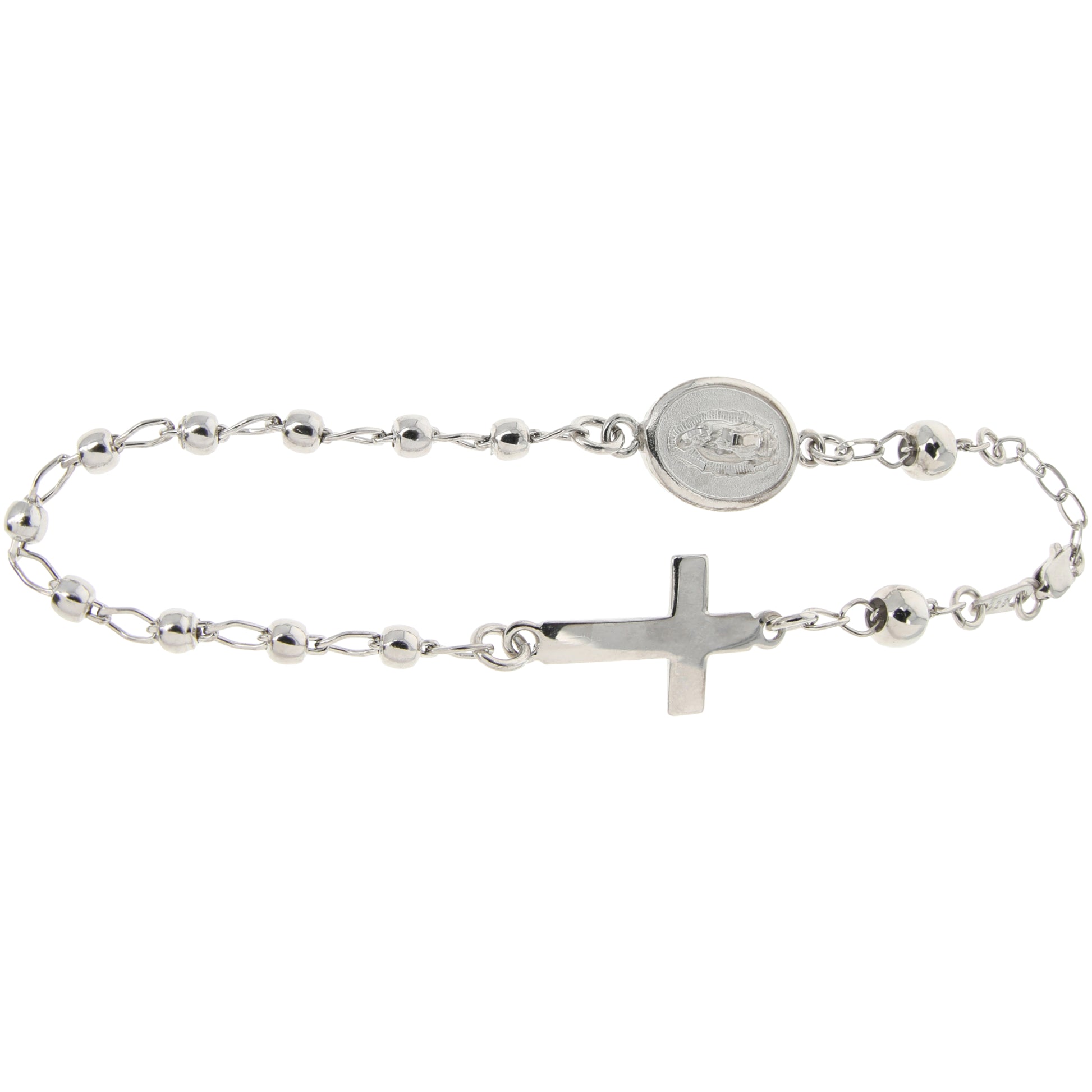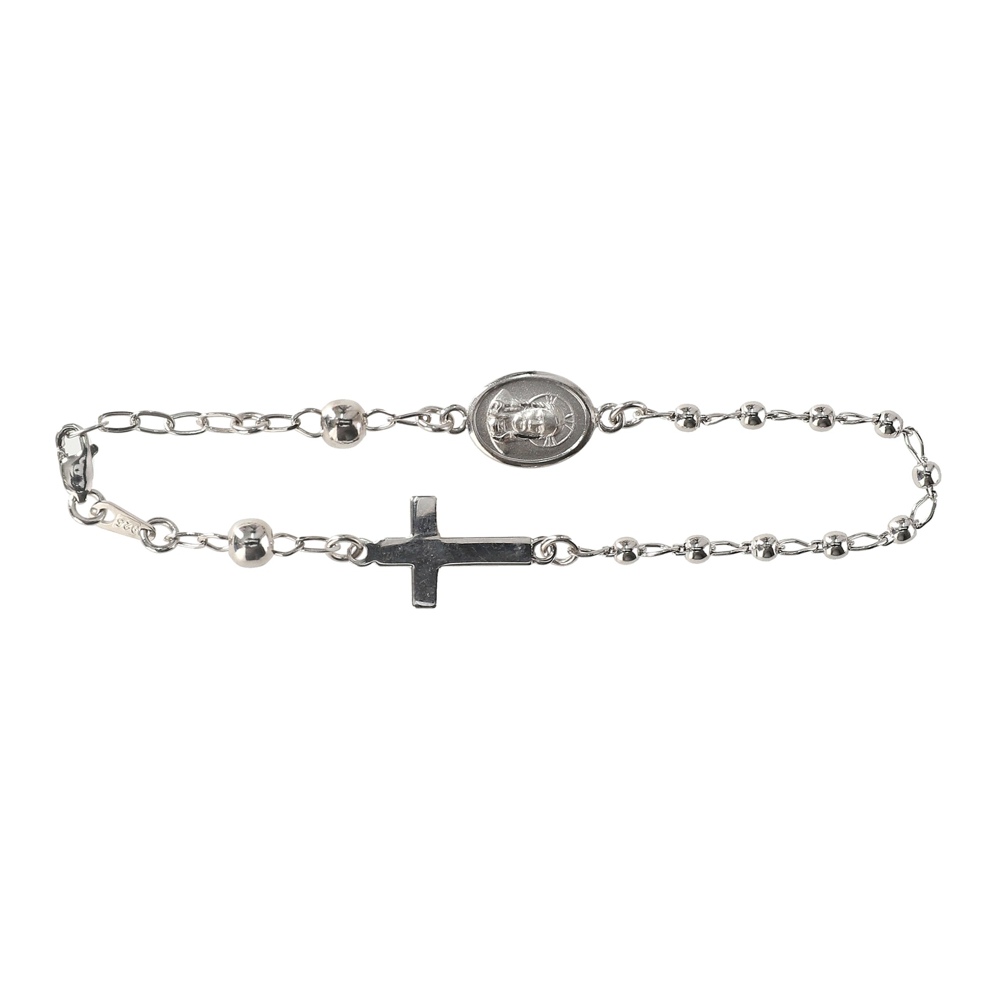 🎁 Incluye: Brazalete de cuentas ajustable ( 19 cm) con cruz y medalla oval reversible doble vista + Caja de regalo