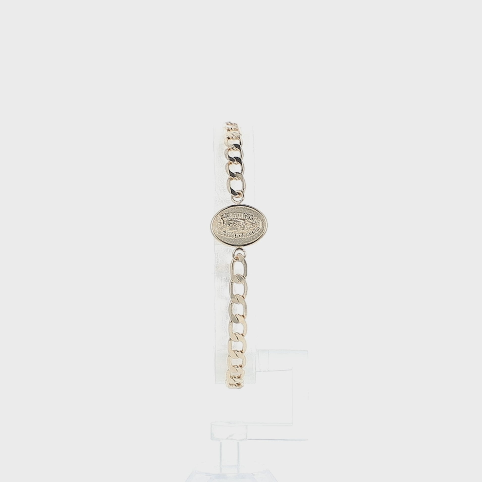 🎁 Incluye: Brazalete tipo esclava de cadena ajustable (17 cm) con medalla oval + Caja de regalo