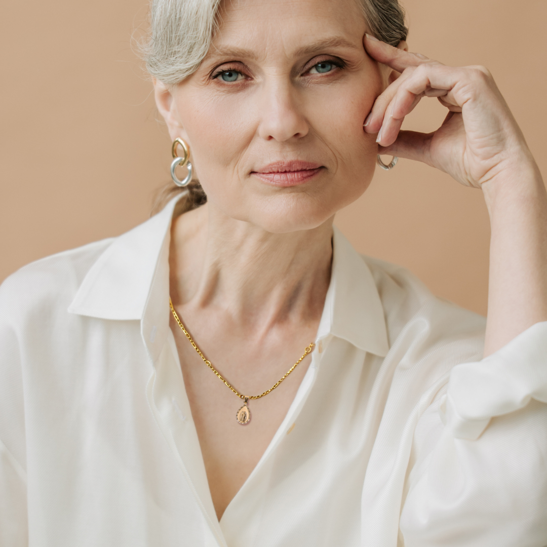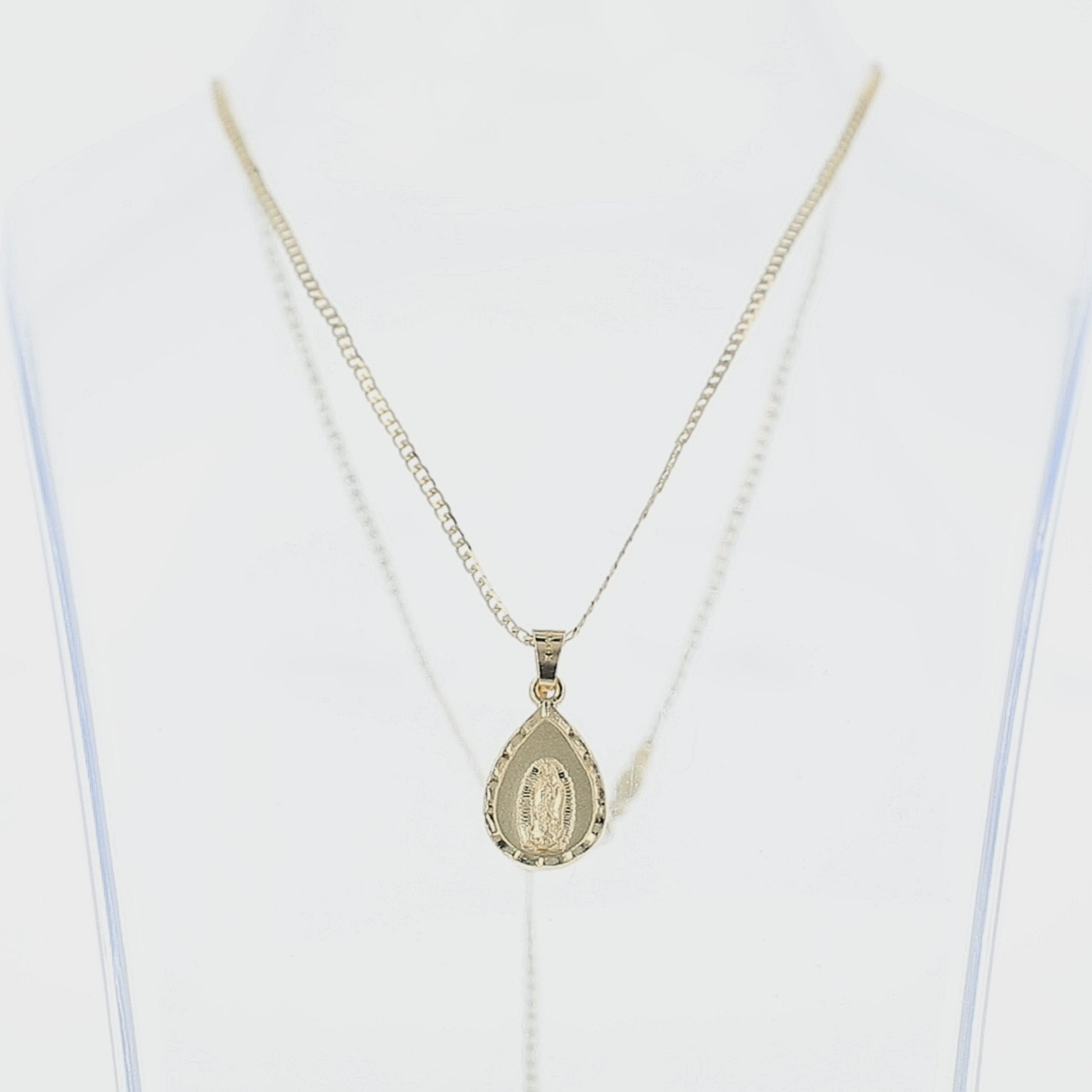 Medalla Gota Virgen de Guadalupe con cadena - Oro 14k laminado - Diamantada
