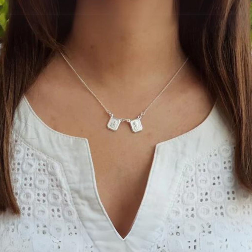🎁 Incluye: Collar con 2 Medallas cuadradas + Caja de regalo