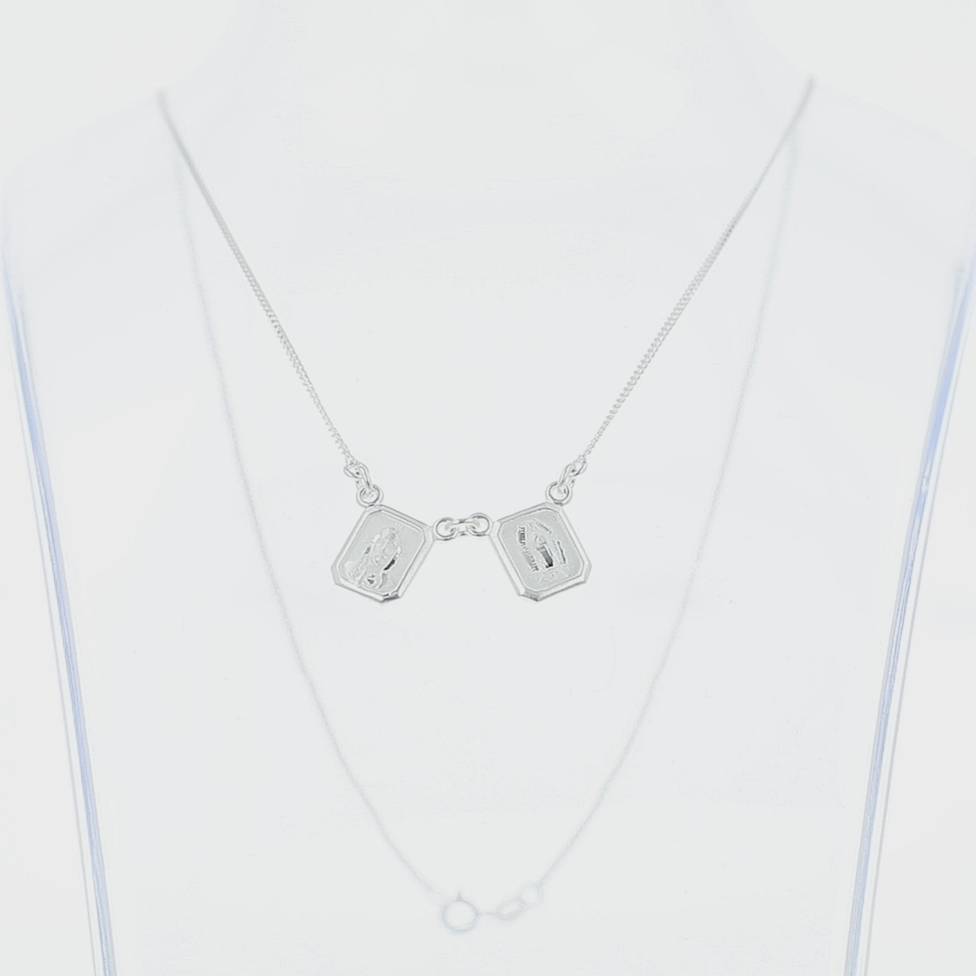 Escapulario Virgen del Carmen y Sagrado Corazón de Jesús con cadena - Plata 925