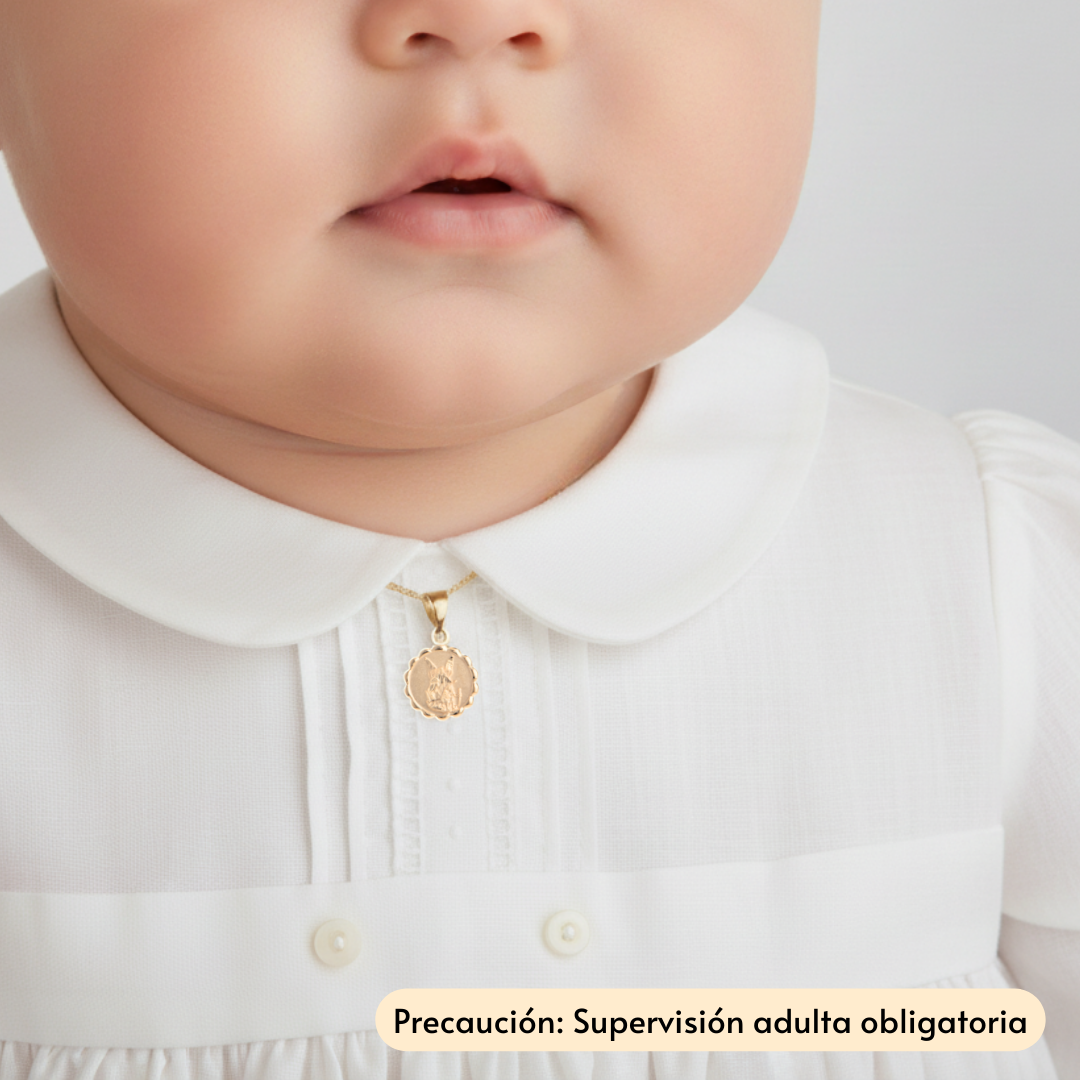 Medalla de bautizo ideal para regalo religioso, con diseño clásico y elegante, imagen de Ángel de la Guarda perfecta para recién nacido, bebé o niño, símbolo de fe, protección y bendición, recuerdo especial y significativo para el sacramento del bautismo.