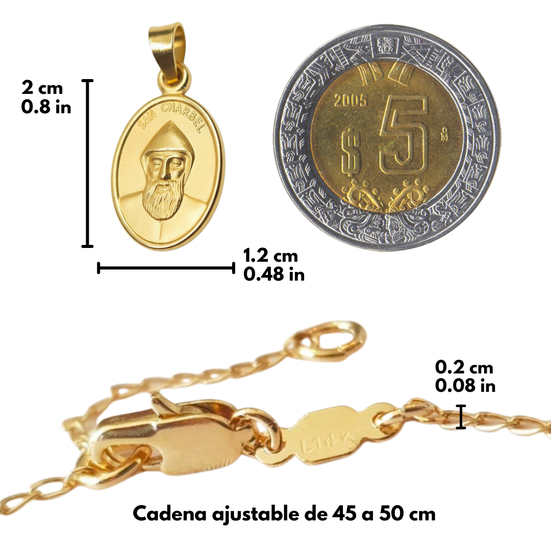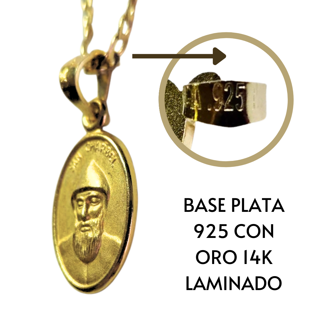 Medalla San Charbel base Plata .925 cubierta con Oro Laminado 14K