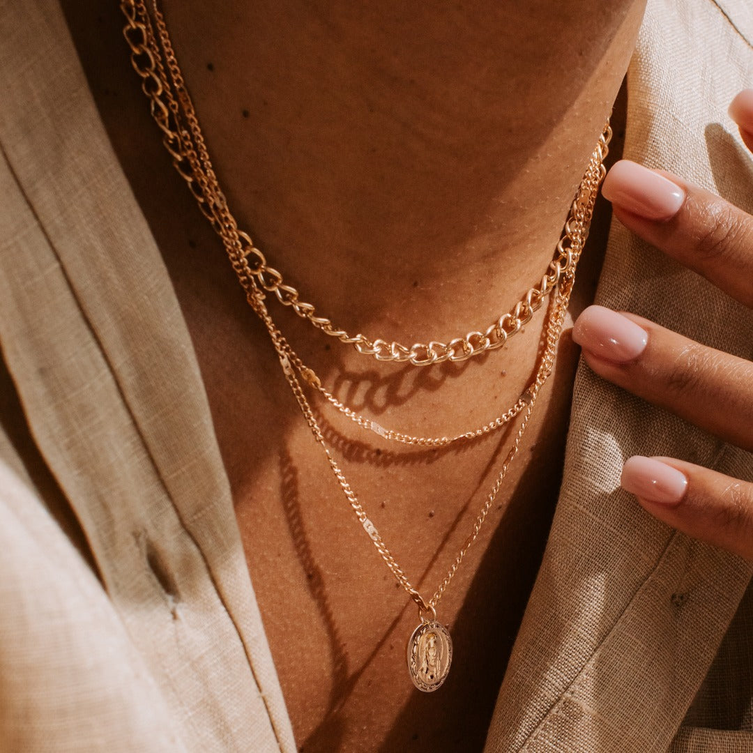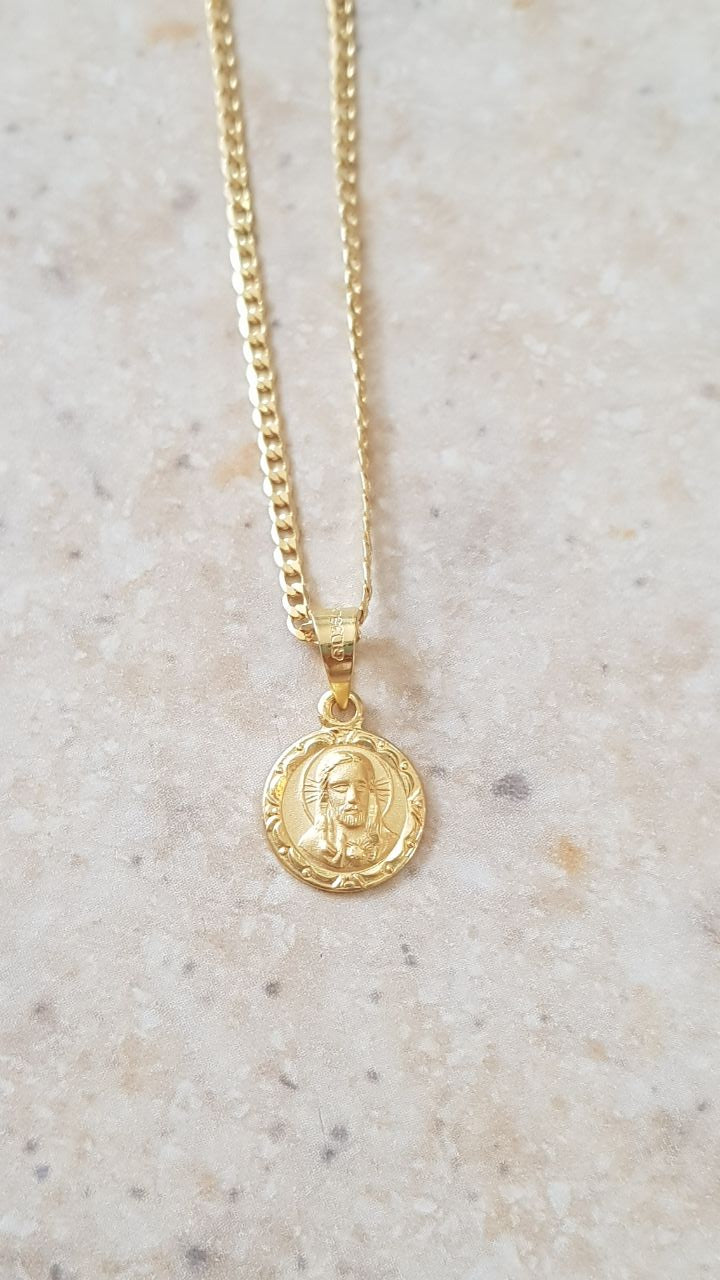 Medalla Sagrado Corazón de Jesús con cadena - Oro 14K Laminado - 7BA