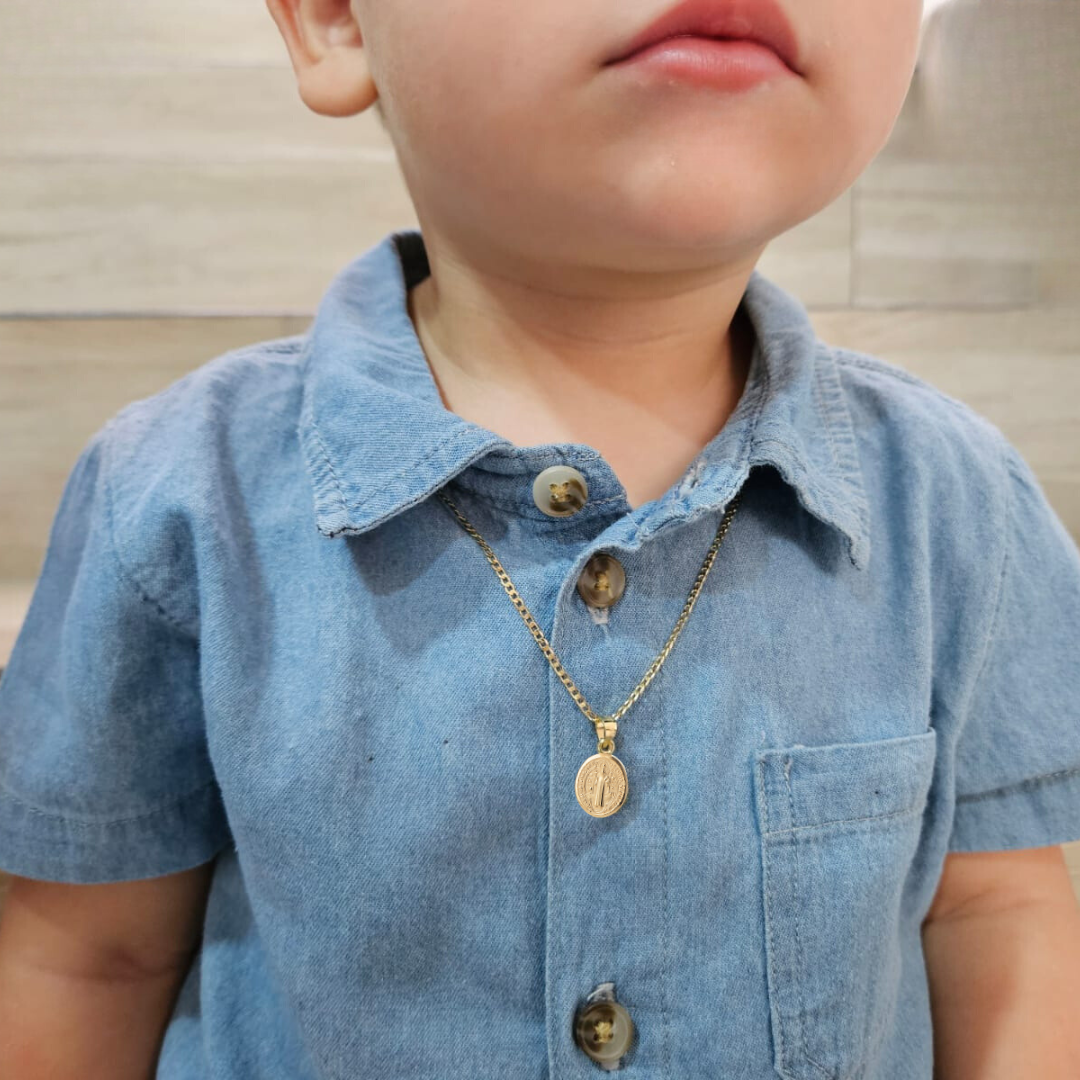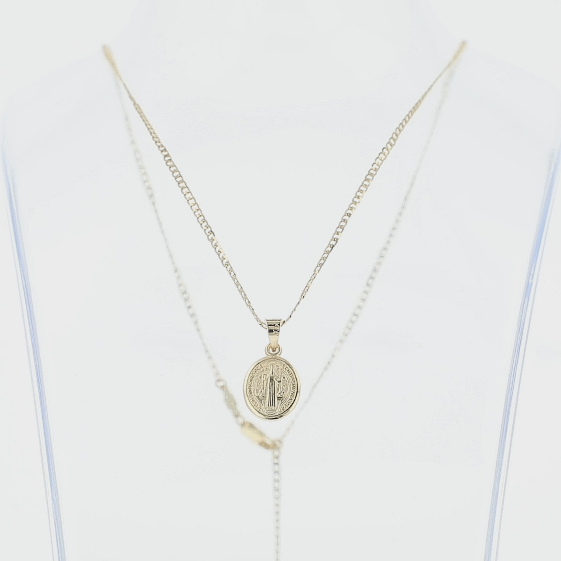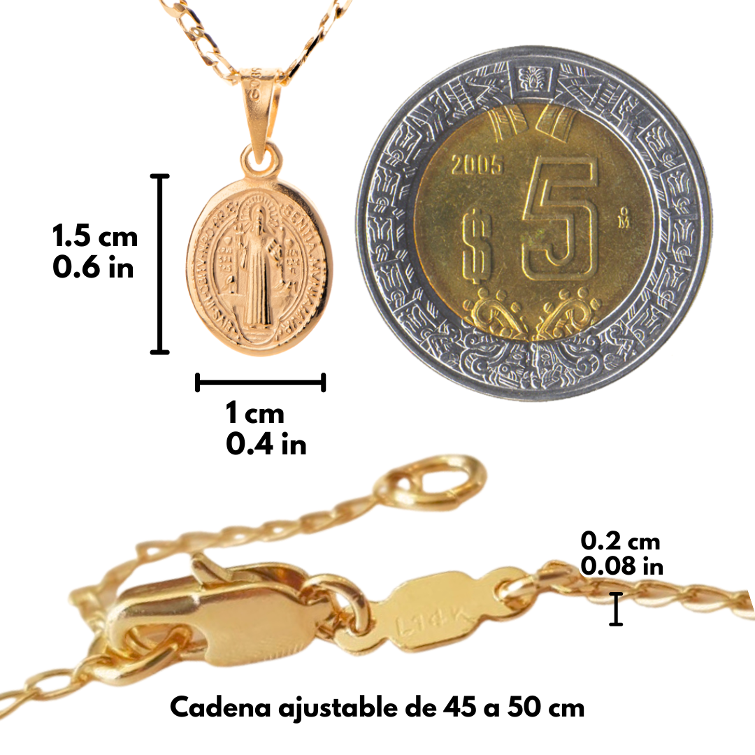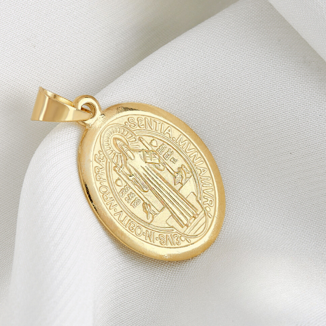 Medalla San Benito oval con cadena - Oro 14k laminado