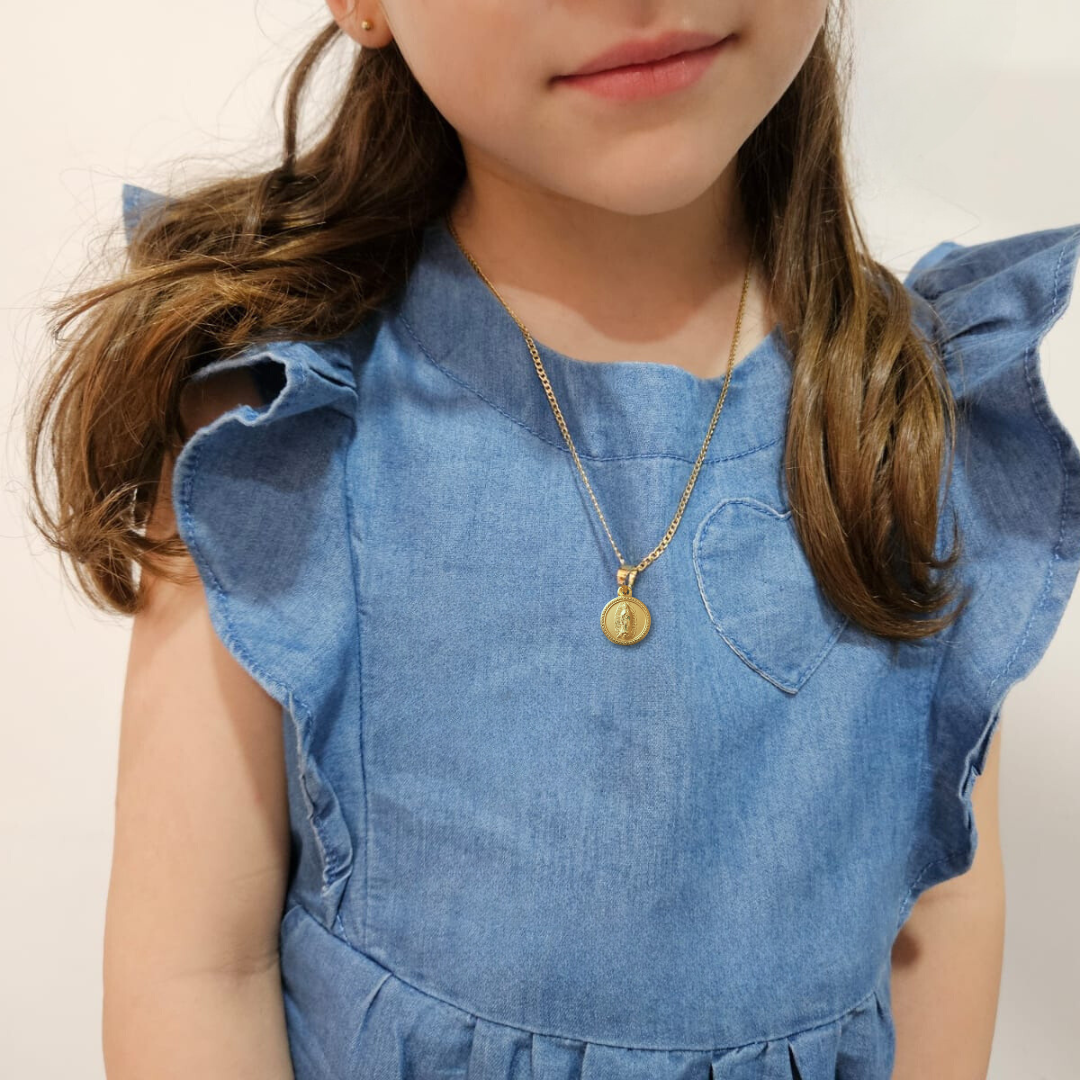 Medalla Redonda Virgen de Guadalupe con cadena - Oro 14K laminado - RX