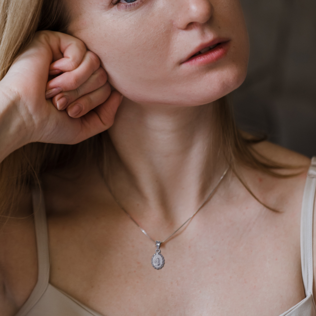 Medalla Virgen del Carmen con cadena - Plata esterlina 925