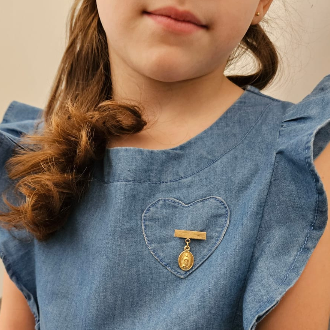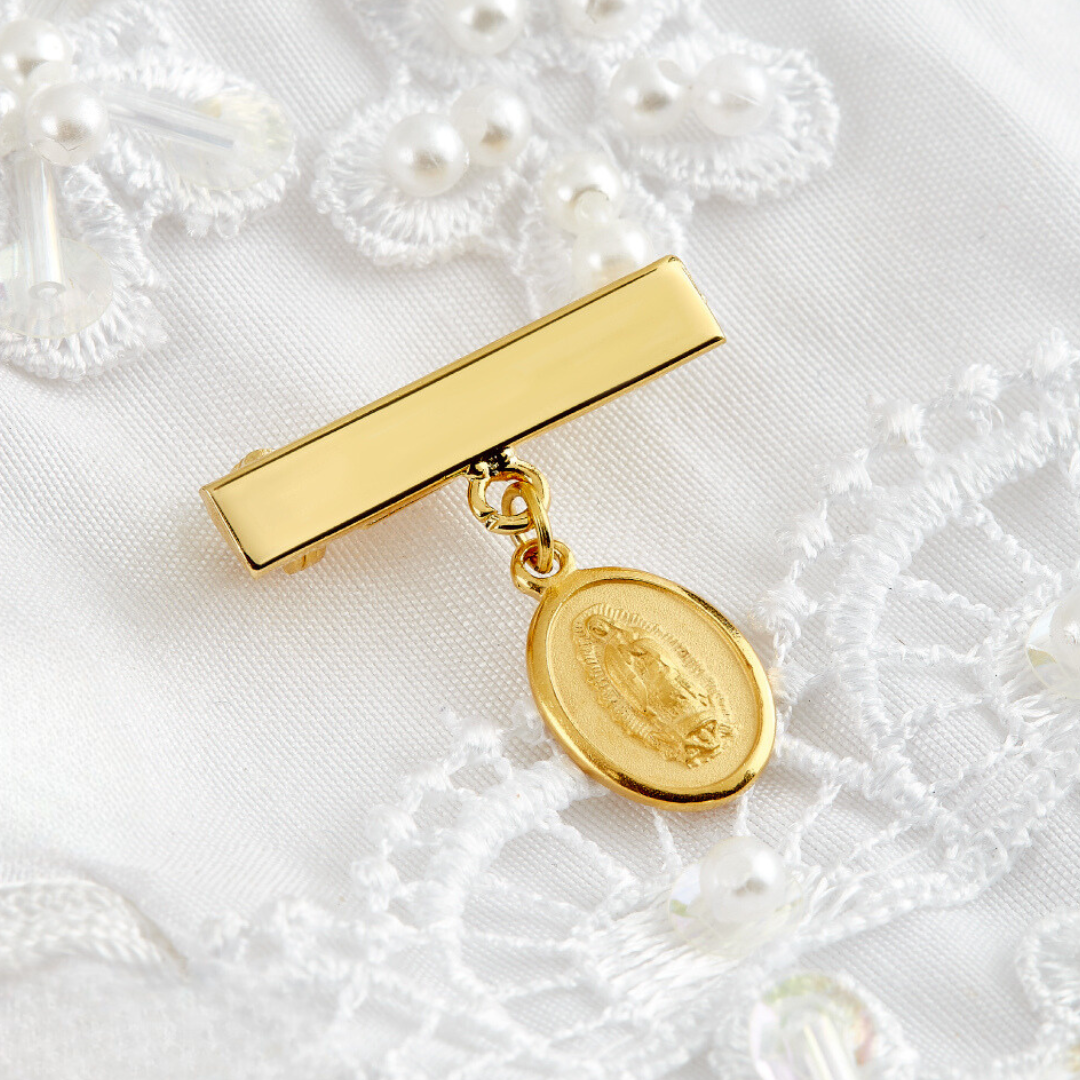 ✨ Material: Oro 14k laminado (Broche con seguro para Bautizo o primera comunión, Para el saco o ropón)