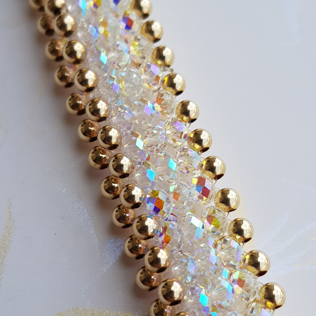 Pulsera hilo elástico con cristal claro u oscuro y bola oro laminado 14K - Línea Adamoon