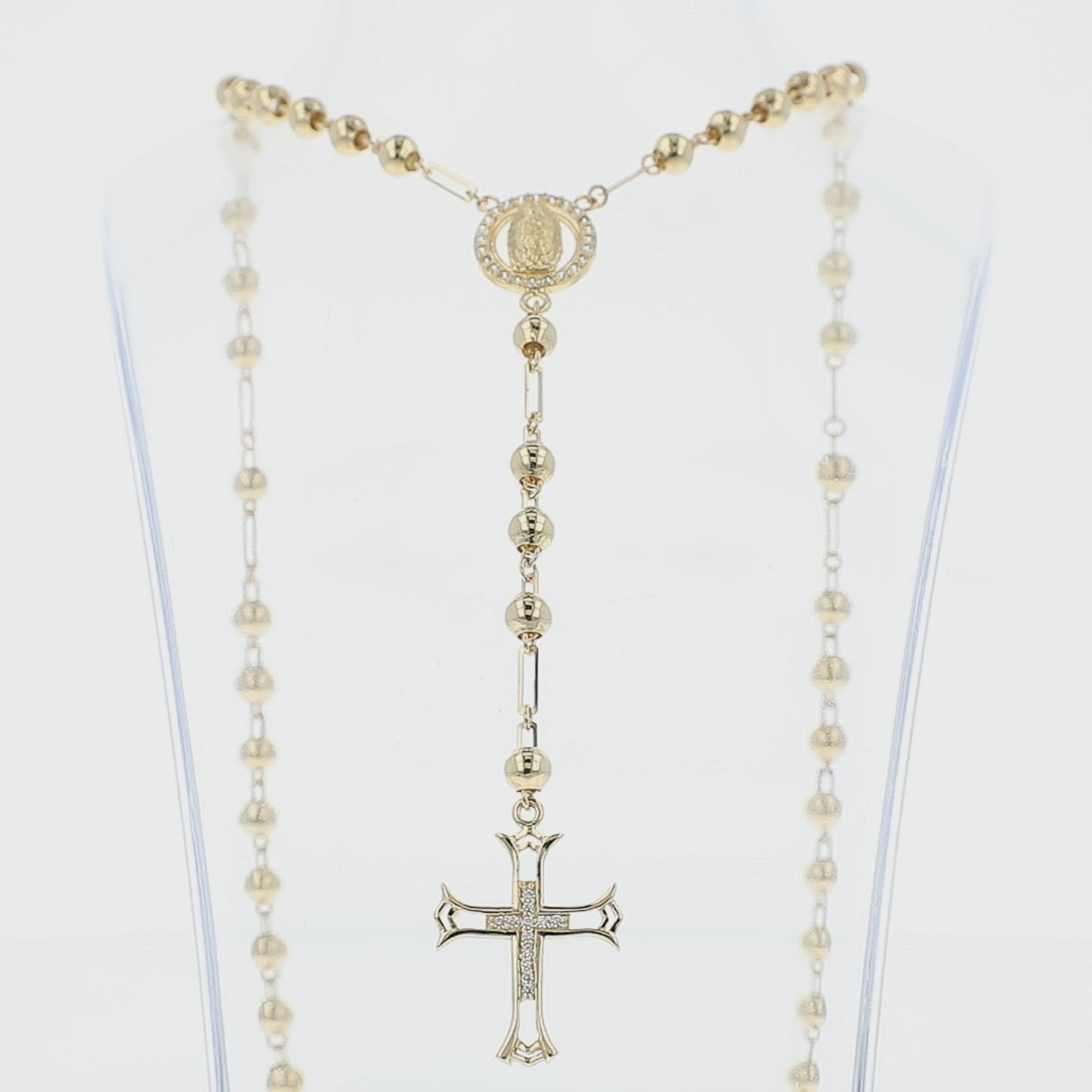 Rosario Virgen de Guadalupe y Cruz - Oro 14k e incrustaciones de zirconia